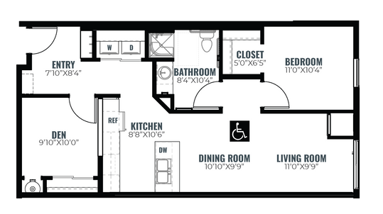 Experience comfortable, contemporary living in this spacious 1-bedroom apartment with a versatile den—perfect for a home office or guest space. The open floorplan features a stylish kitchen with a peninsula and bar seating, with a dishwasher and in-unit laundry. Enjoy the walk-in closet with direct bathroom access, bright windows that fill the home with natural light, and a private balcony for relaxing outdoors. ADA-accessible options available.
